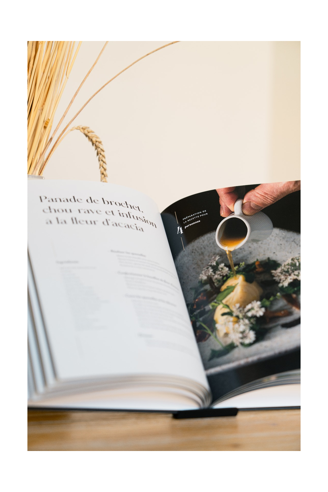 The chef selected 22 regional products from the Cantal region, which he is particularly fond of, and transformed them into 22 gourmet recipes. The recipes were specially created for the book, before being added to the menu of the Michelin-starred restaurant "L'Auberge de la Tour" in Marcolès. The products have been selected not only for their quality and location, but also because they have been prepared by local producers with whom the chef has worked for many years.